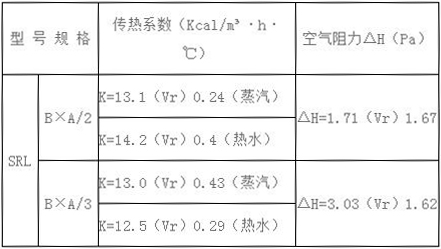 表一、SRL空氣熱交換器(散熱器)性能在不同工況下實(shí)驗(yàn)公式